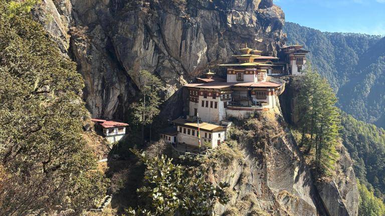 Paro Taktsang (Tiger's nest monastery) : Paro Taktsang, a sacred Vajrayana Himalayan Buddhist site in Bhutan, is one of thirteen Tiger's Nest caves in Tibet. Located in the outskirts of Paro district, it is the most sacred Buddhist site in Bhutan, with a cluster of temples clinging to a steep cliff at 3120 meters above sea level.