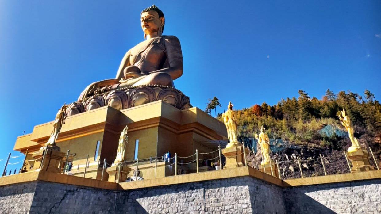 Buddha Dordenma Statue : Atop a hill in Thimphu, is a massive, golden Buddha sitting atop a gilded meditation hall. Hidden inside its hashas 125,000 smallerBuddhas. This means that in Thimphu, there are more Buddha statues than this city`s population(100000) ,It is also known as Budda point.