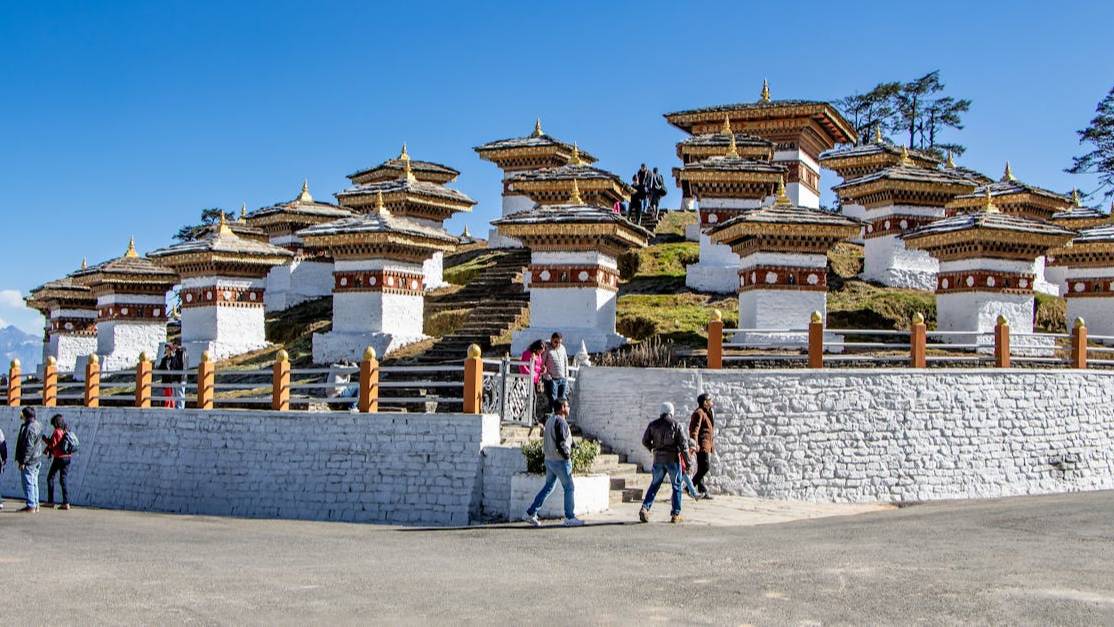 Dochula Pass: Dochula Pass, 3100 m high between Thimphu and Punkaha, offers scenic Eastern Himalayan views with 108 stupas and beautiful snow-covered winters.