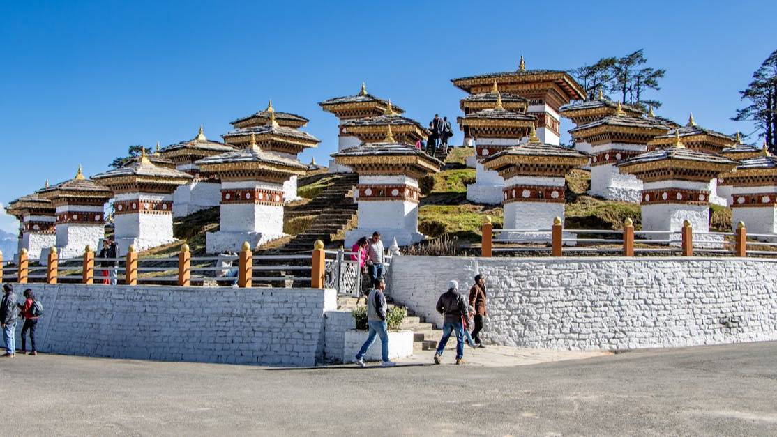 Dochula Pass: Dochula Pass, 3100 m high between Thimphu and Punkaha, offers scenic Eastern Himalayan views with 108 stupas and beautiful snow-covered winters.